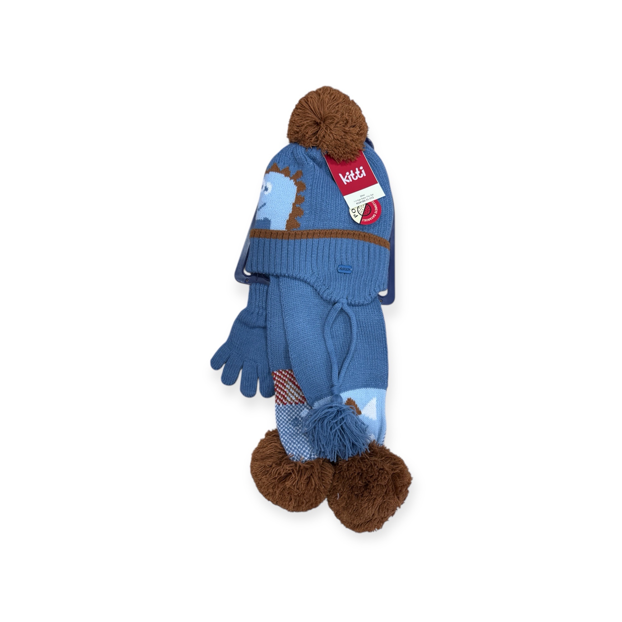 Διαθέτει σκουφάκι με αυτάκια, γαντάκια και κασκόλ.