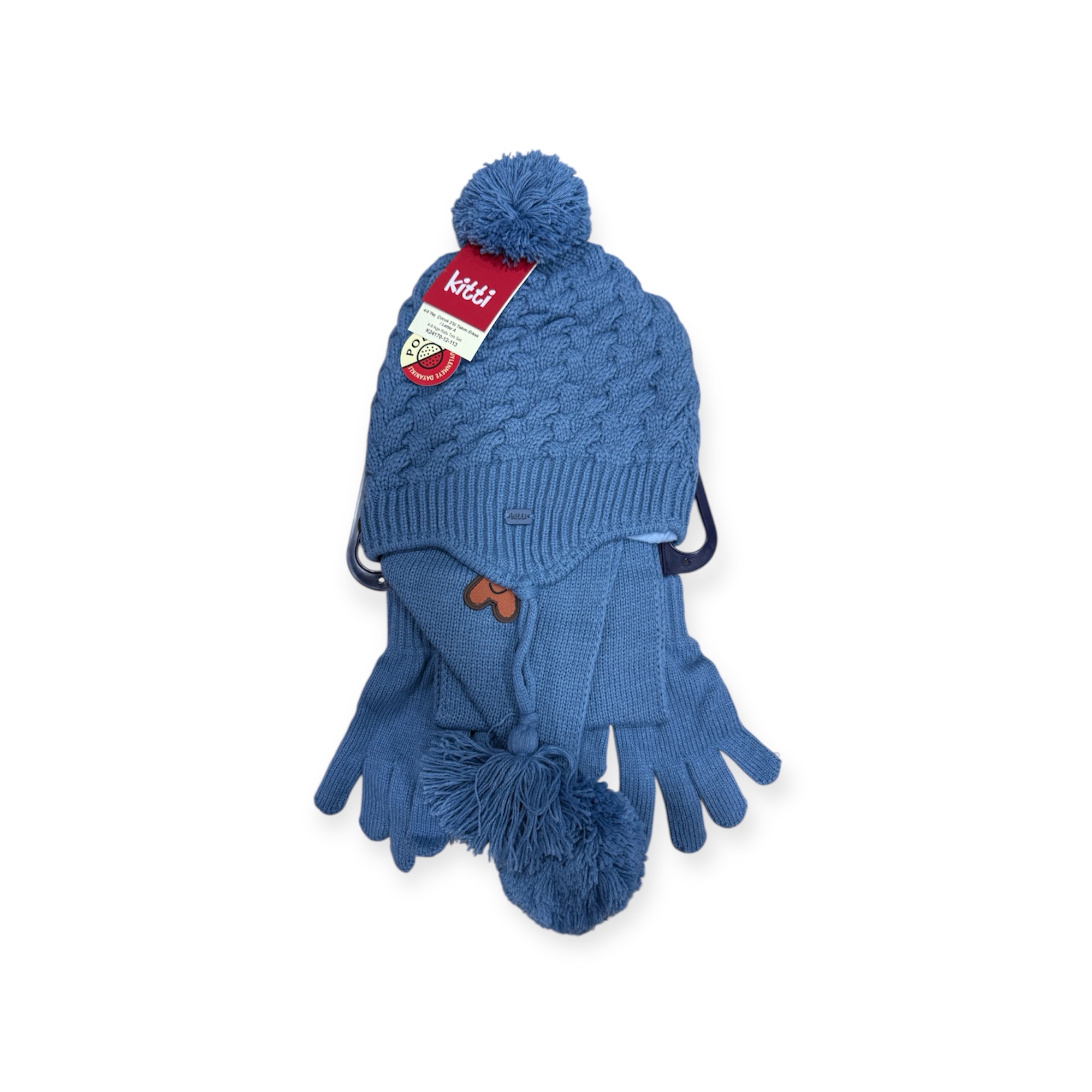 Διαθέτει σκουφάκι , γαντάκια και κασκόλ.